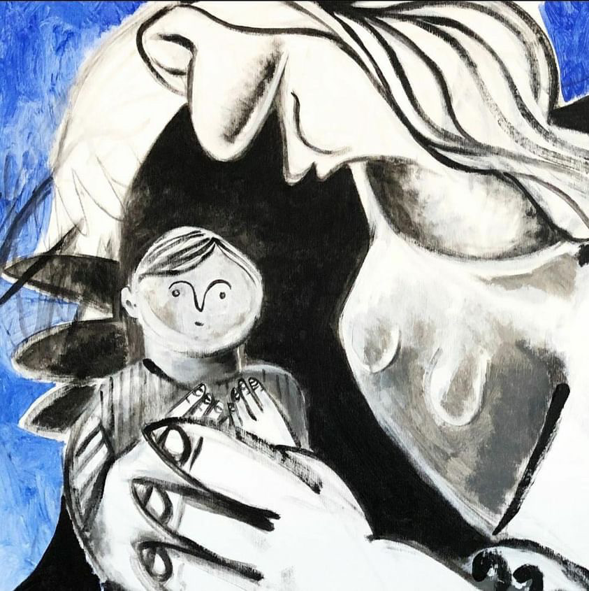 is looking now, as the child throws herself
